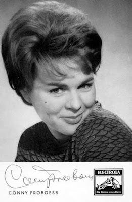 Born Cornelia Froboess in 1943, she grew up in postwar Germany and was a natural singer as well as an actress. Working under the professional name Conny Froboess -- although she also later recorded as Cornelia Froboess -- she had her first hit in 1951 at age eight, in the form of a pop number titled "Pack die Badehose Ein" (aka "Pack Your Swimsuit"), which had been written by her father and was so popular that it became a lingering pop culture catch phrase.