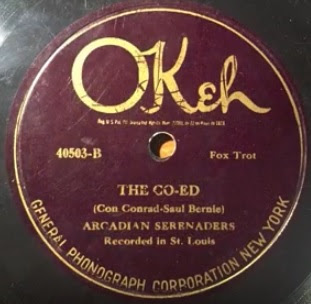 Here's a nice recording cut by a wonderful, though largely forgotten, combo; The Arcadian Serenaders. The record was cut during Okeh's fourth trip to St. Louis in October of 1925,